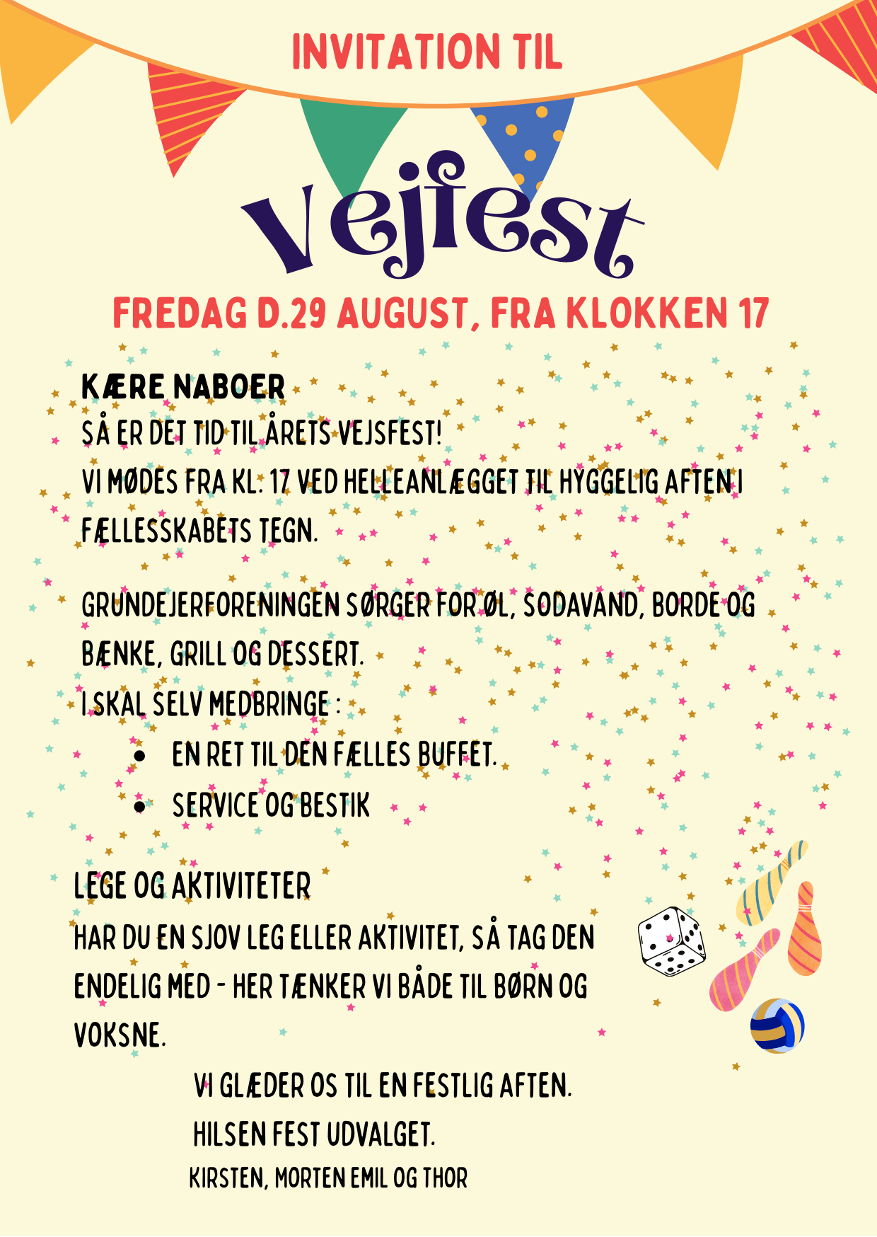 Vores årlige sommerfest starter kl. 17 med fri bar og lege for de legeglade sjæle.